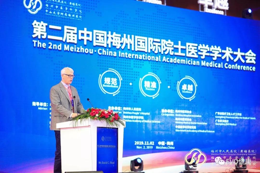 David Read說,來梅州參加此次大會感到非常高興,大會內(nèi)容覆蓋了臨床研究和醫(yī)療科研領(lǐng)域,專業(yè)性很高。他希望大會能一直成功舉辦,幫助提高地方醫(yī)療水平和人們健康水平,并歡迎大家到美國波士頓交流合作,再續(xù)長久的友誼。