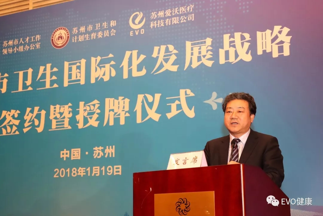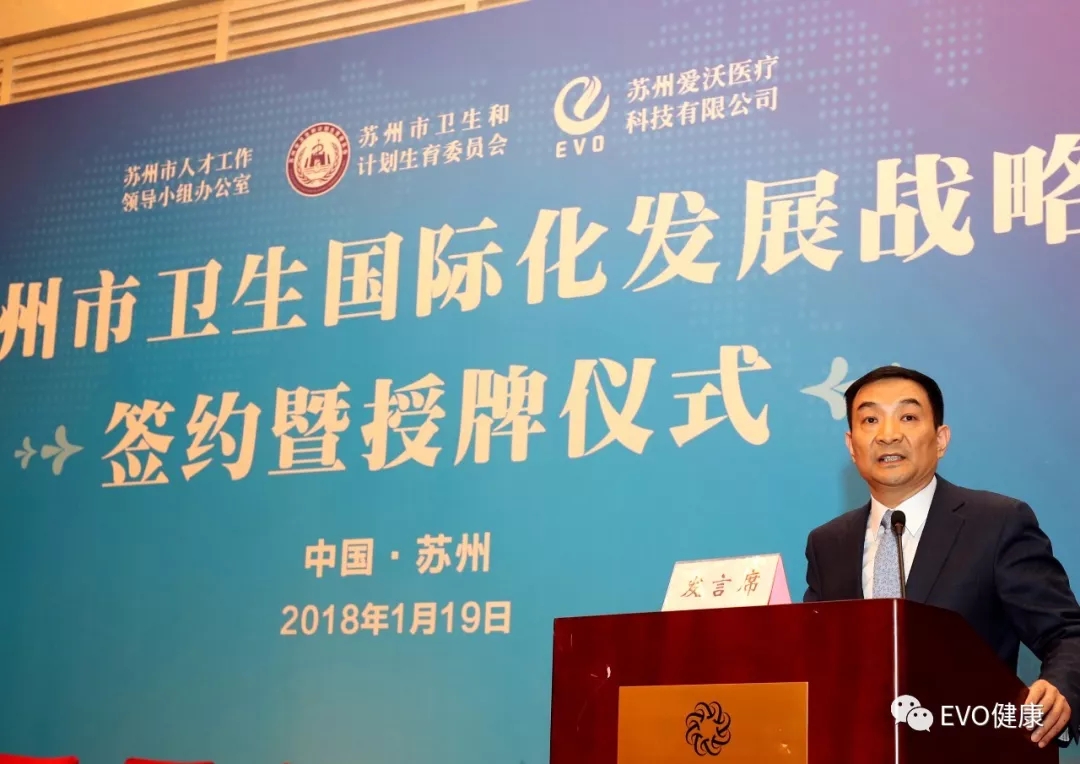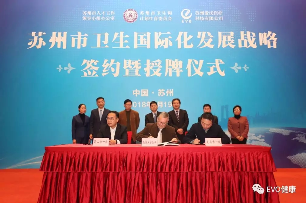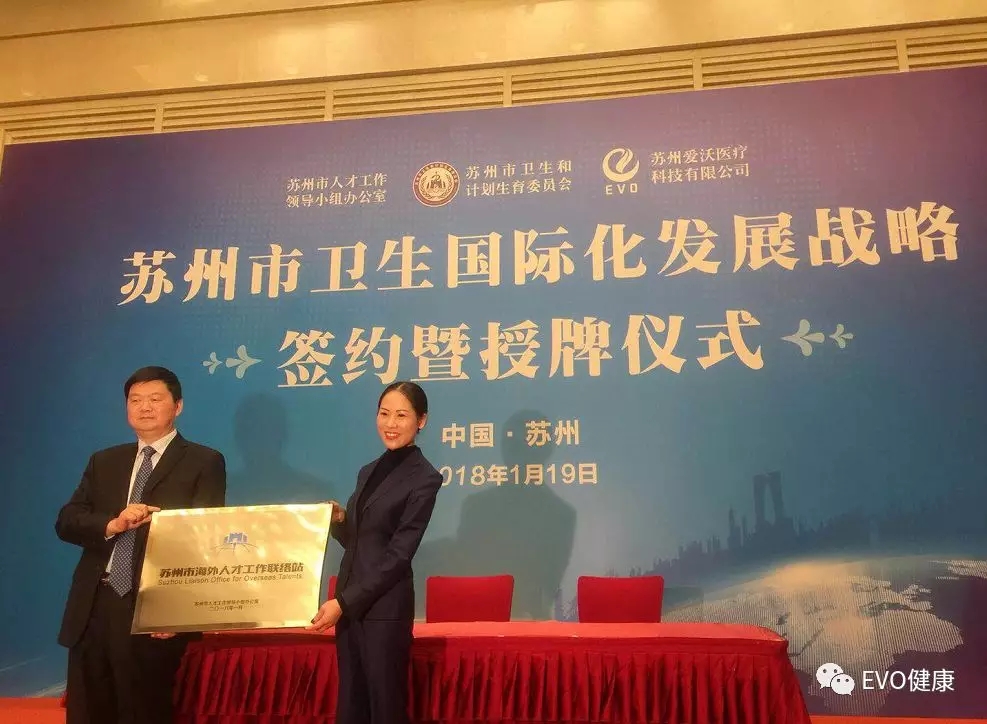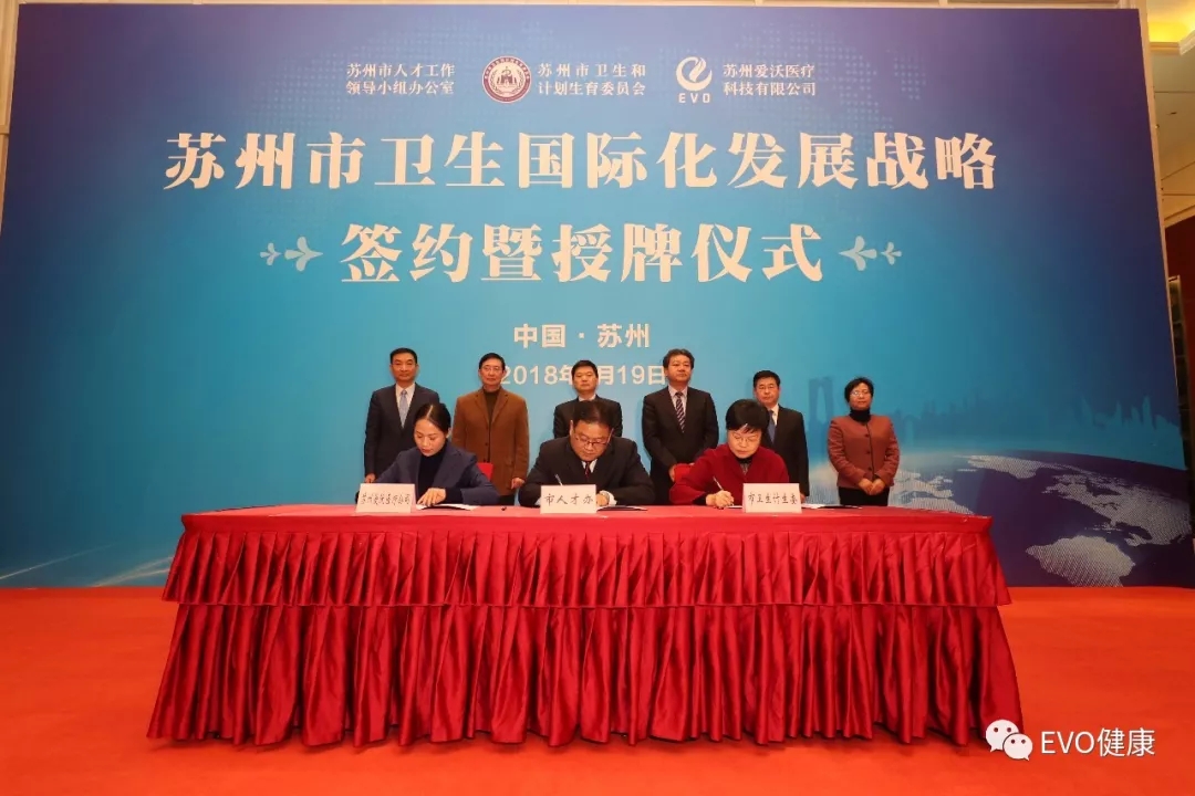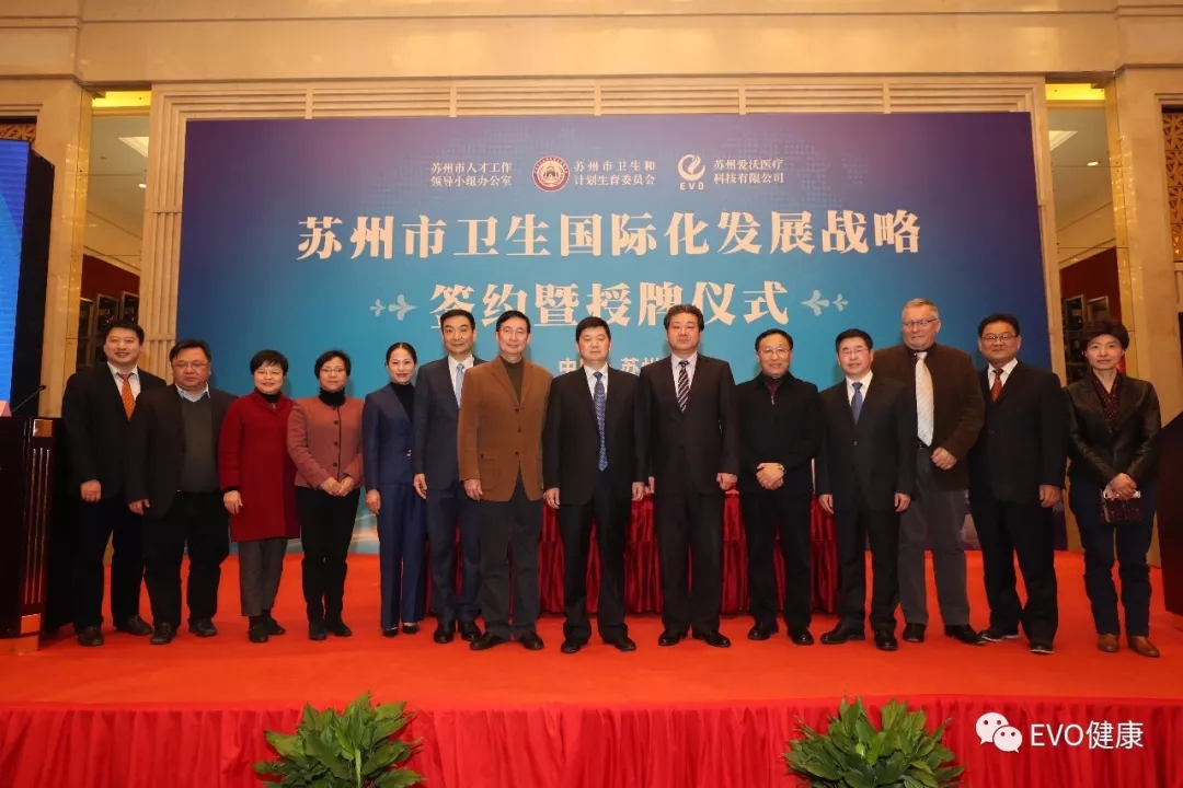1月19日,由蘇州市政府主辦、蘇州市委組織部人才辦、蘇州市衛(wèi)生計(jì)生委、EVO醫(yī)療共同承辦的蘇州市衛(wèi)生國際化發(fā)展戰(zhàn)略簽約暨授牌儀式在蘇州隆重舉行.