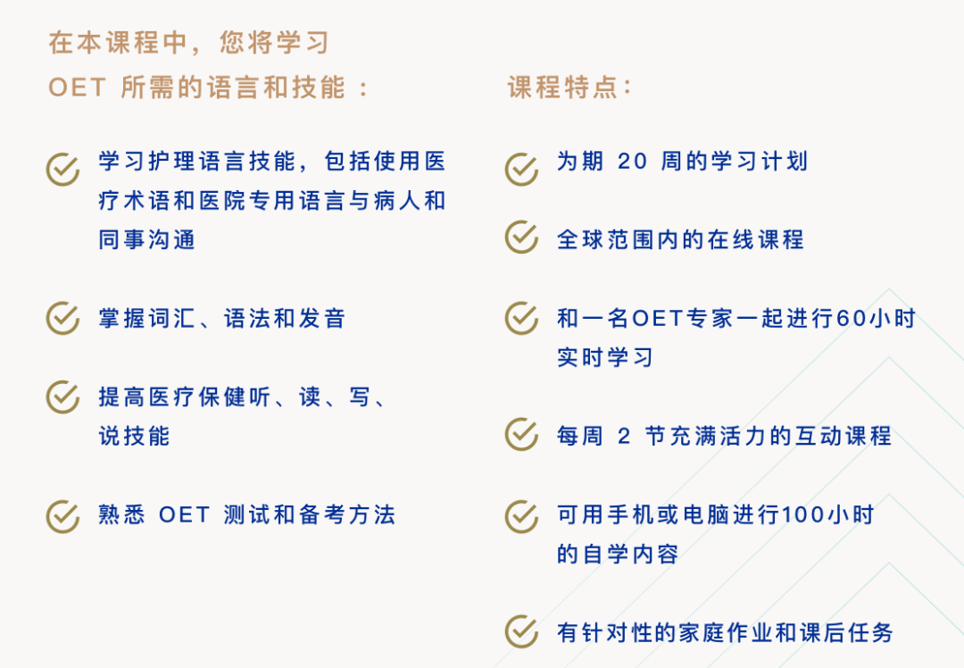 OET是全球認(rèn)可的醫(yī)學(xué)英語考試,它允許非英語國家的護(hù)士在英語國家申請護(hù)士執(zhí)照和/或在講英語的私立醫(yī)院工作。與其他英語考試相比,OET由于其專門使用醫(yī)學(xué)術(shù)語,而受到全球護(hù)士的青睞。