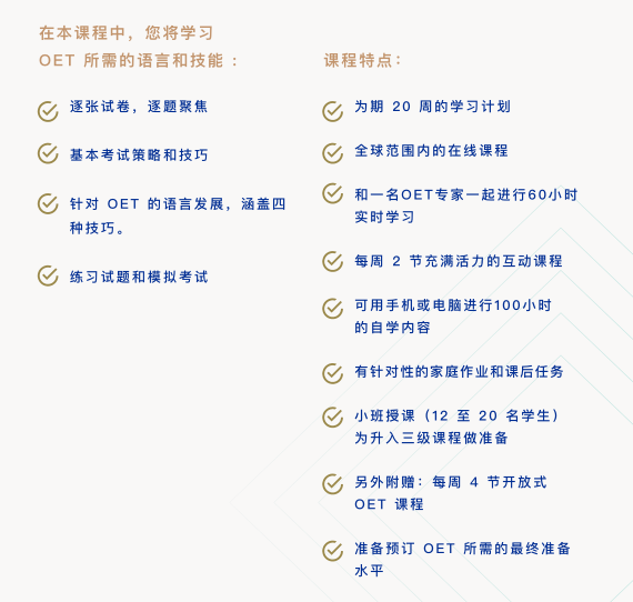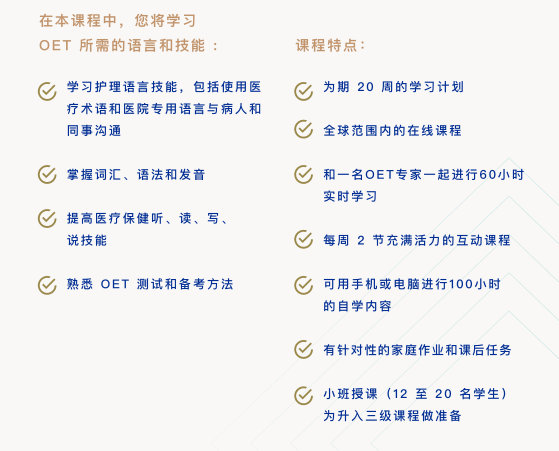 OET在中國各省的所有主要城市設(shè)有考試中心。您的OET課程將由來自英國的高教學(xué)質(zhì)量的OET教師用英語教授。課程將在普通工作時間外的任何您方便的時間通過Zoom進(jìn)行。