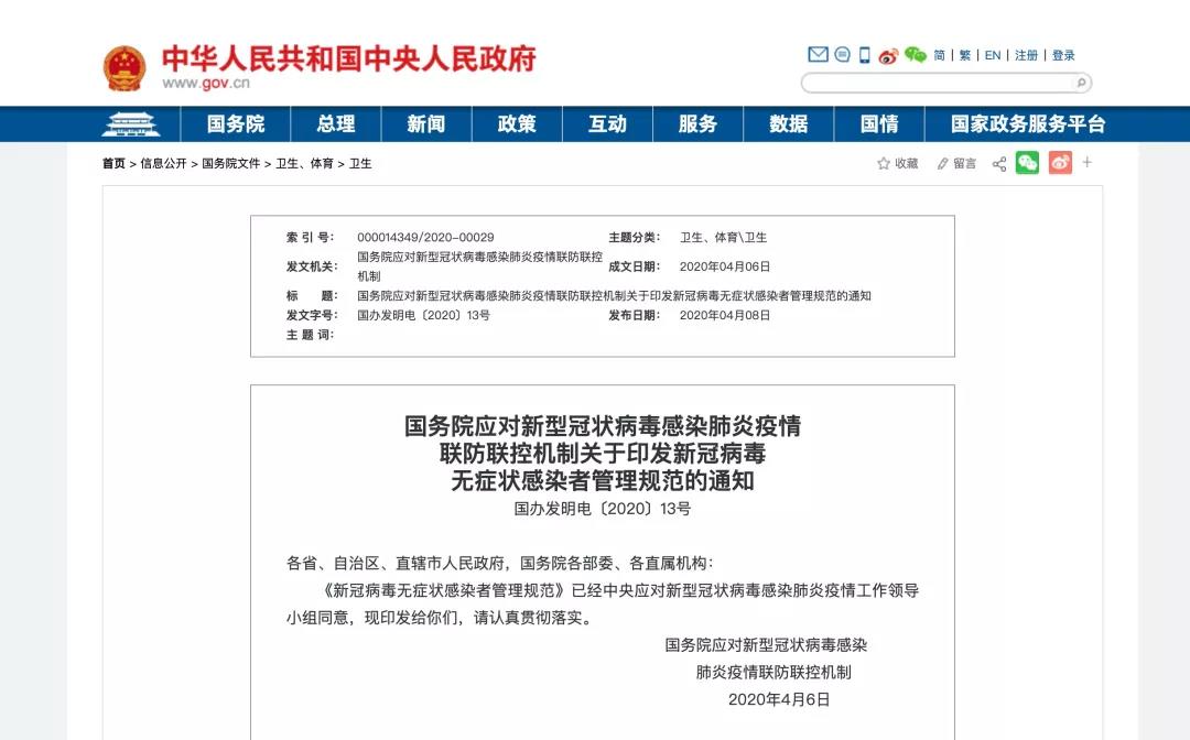 國(guó)務(wù)院:為加強(qiáng)對(duì)新冠病毒無(wú)癥狀感染者的發(fā)現(xiàn)、報(bào)告、管理工作,依據(jù)《中華人民共和國(guó)傳染病防治法》、《中華人民共和國(guó)國(guó)境衛(wèi)生檢疫法》,制定本規(guī)范。 國(guó)務(wù)院應(yīng)對(duì)新型冠狀病